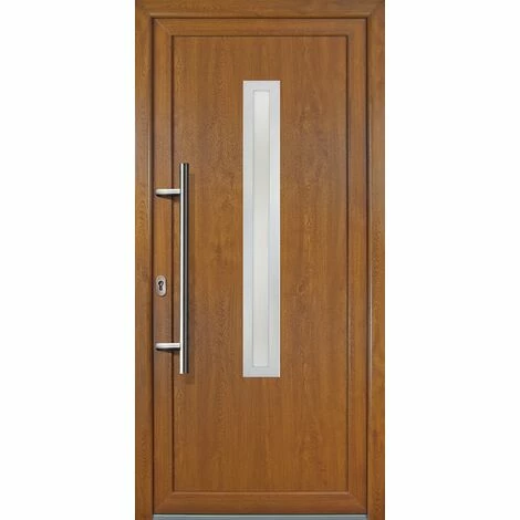 MEETH Portes D'entrée Exklusiv Modèle 70, Intérieur: Blanc, Extérieur: Golden Oak Largeur: 88cm, Hauteur: 200cm, Sens D'ouverture: Tirant Gauche